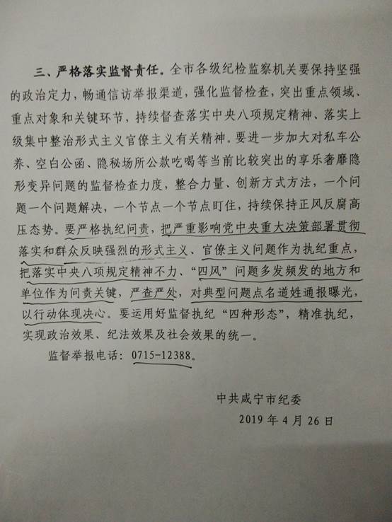 2019年五一、端午节将至,为深入贯彻落实中央八项规定精神和省委、市委具体办法要求,持续净化节日风气和社会环境,巩固拓展正风肃纪成果,现将咸宁市纪委《关于五一端午期间严明纪律要求持续纠治“四风”的通知》(咸纪文[2019]7号)转发给你们。请组织全体党员、干部职工认真学习文件精神,并按照《通知》要求贯彻落实。校纪委将不定期进行明查暗访。