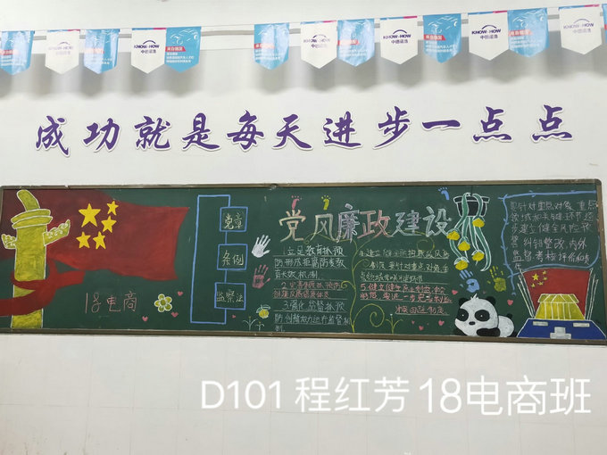 为贯彻落实《全校第二十个党风廉政建设宣教月活动实施方案》以及2019年“十进十建”工作计划,让习近平新时代中国特色社会主义思想及《党章》《条例》和《监察法》走进教室,走进学生,2019年5月16日我系组织各班开展了“十进十建”主题黑板报评比活动。