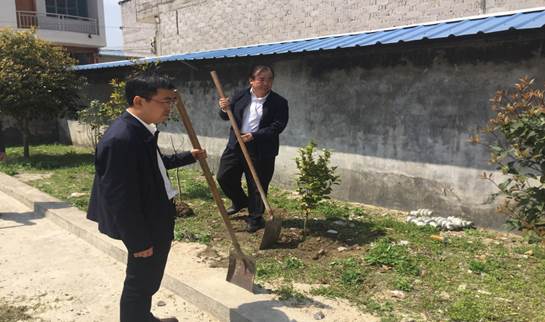 上午11点扶贫组一行到达通城县麦市镇何塅村。首先由镇、村干部介绍了贫困村的基本情况并对结对帮扶具体工作作了说明。校长易元红代表学校作了“学校将积极配合镇政府和何塅村做好精准扶贫工作”表态发言。会议结束后,校领导和村干部在村支部院内及移民新村周围植上50余棵茶花树。
