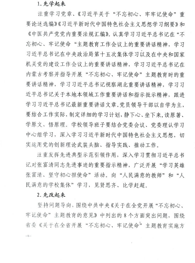 关于印发学校党委“不忘初心、牢记使命”主题教育先学先改工作实施方案的通知