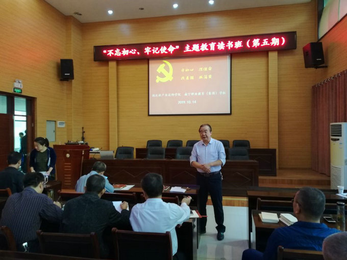 10月14日、15日,学校学习贯彻习近平新时代中国特色社会主义思想暨“不忘初心、牢记使命”主题教育读书班(5-6期)开展学先进典型、看警示教育片集中研讨、谈个人体会。学校班子成员、工会主席任贤俊、校务委员、校长助理、各总支书记、各支部书记、各系部、处室主要负责人参加了学习。