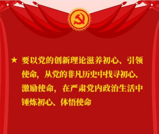 我经常讲,党员、干部要经常重温党章,重温自己的入党誓词,重温革命烈士的家书。党章要放在床头,经常对照检查,看看自己做到了没有?看看自己有没有违背初心的行为?房间要经常打扫,镜子要经常擦拭。要教育引导各级党组织和广大党员、干部经常进行思想政治体检,同党中央要求“对标”,拿党章党规“扫描”,用人民群众新期待“透视”,同先辈先烈、先进典型“对照”,不断叩问初心、守护初心,不断坚守使命、担当使命,始终做到初心如磐、使命在肩。要以党的创新理论滋养初心、引领使命,从党的非凡历史中找寻初心、激励使命,在严肃党内政治生活中锤炼初心、体悟使命,把初心和使命变成锐意进取、开拓创新的精气神和埋头苦干、真抓实干的原动力。