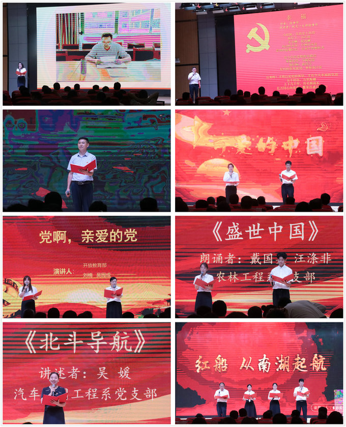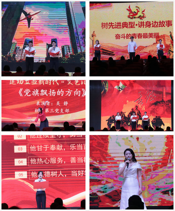 各党支部的老师们用深情嘹亮的歌声、热情洋溢的舞蹈、气势恢宏的朗诵等形式,演绎了中国共产党用鲜血、汗水、泪水、勇气、智慧、力量书写的百年;把革命、建设、改革、复兴事业完美的诠释出来。通过讲述身边人真实感人的事迹,展现了优秀党员教师在学校高质量发展进程中敢担当、能吃苦、肯奋斗的精神风采。一个先进典型就是一面旗帜,一名模范就是一根标杆,以他们的先进事迹和崇高精神激发起广大党员干部昂扬的斗志,引领广大教职工笃行不怠、勇毅前行,护航新征程、建功新时代。
