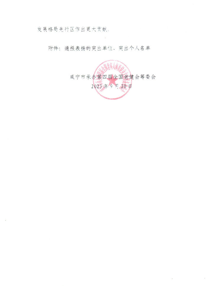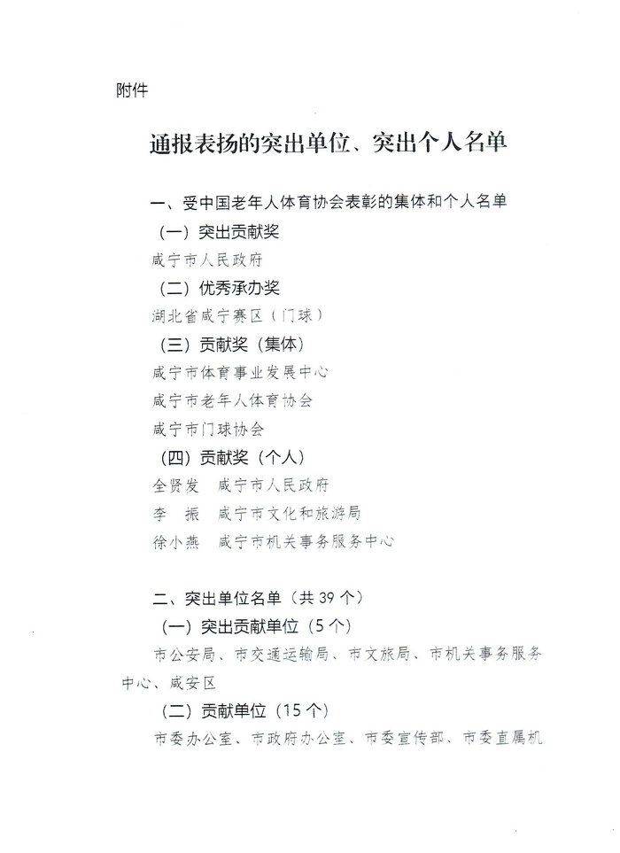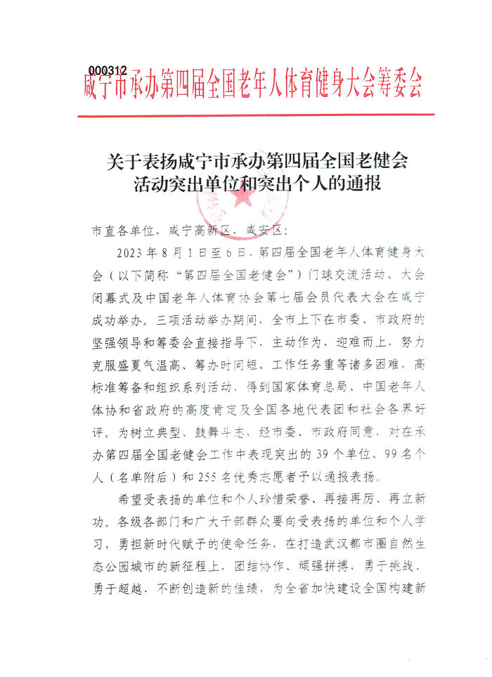 关于表扬咸宁市承办第四届全国老健会活动突出单位和突出个人的通报