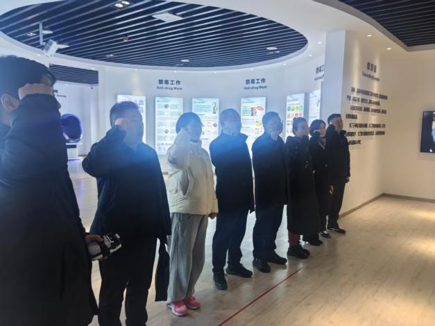 随后,调研团队前往禁毒教育基地。通过毒品仿真模型、案例展示、禁毒宣誓等多种形式,领导们详细考察基地的教育功能与运行模式,对我校将禁毒教育与思政教育、心理健康教育有机融合的做法表示赞赏,同时指出禁毒教育是社会治理的重要组成部分,学校应发挥人才与平台优势,持续深化禁毒宣传教育,为构建平安校园、平安社会贡献力量。