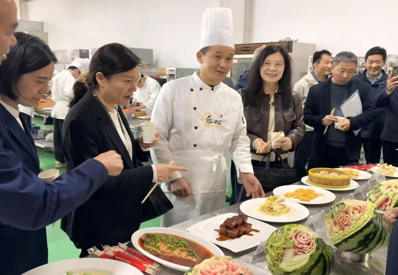 专家组参观产教融合楼旅游系烹饪技艺教学现场